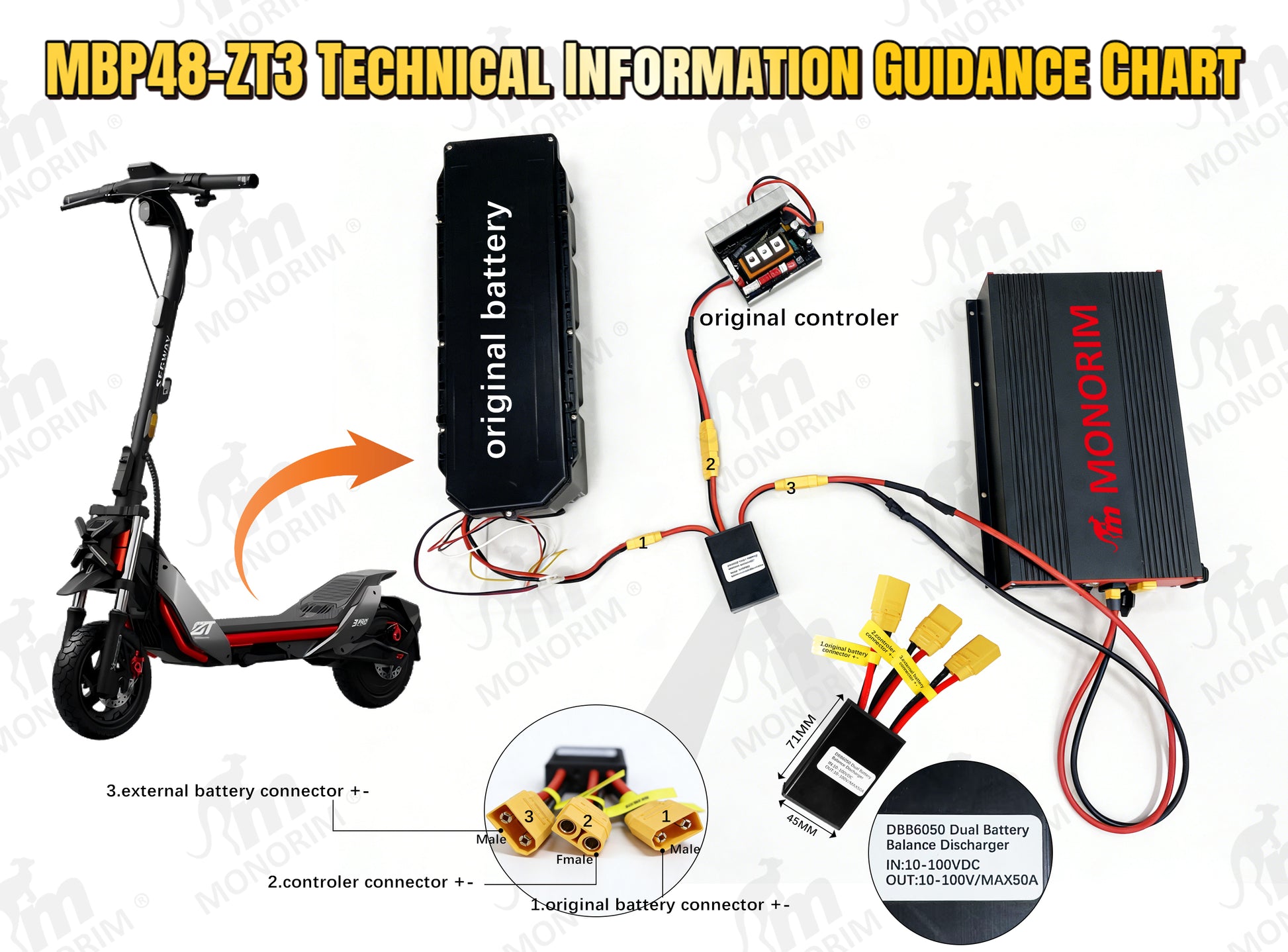 monorim MBP48-ZT3 48v 13.5ah external removable power bank for ZT3pro range extender over 35km
