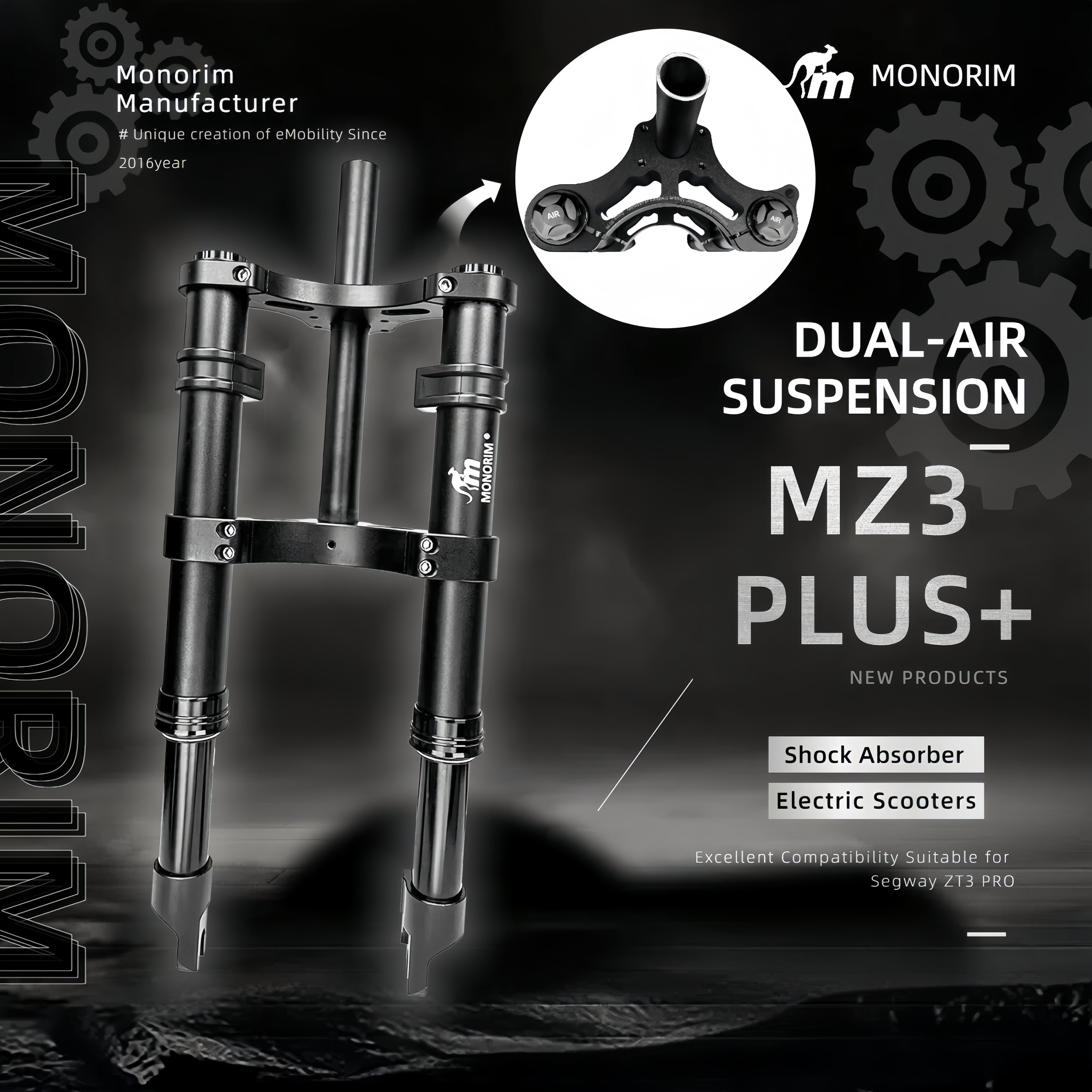 Monorim MZ3 plus+ Dual air version front suspension for Segway ZT3 pro.